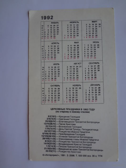 Календарик 1992 г. Г.И. Семирадский. Христос у Марфы и Марии.