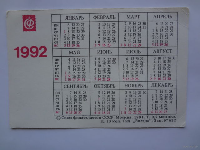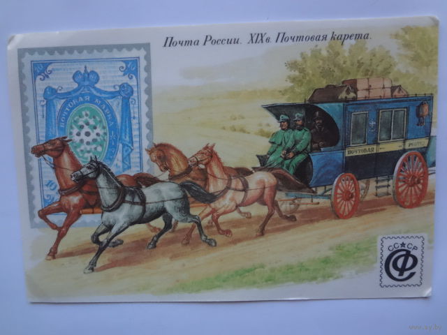 Календарик 1992 г. Почта России. XIX в. Почтовая карета.