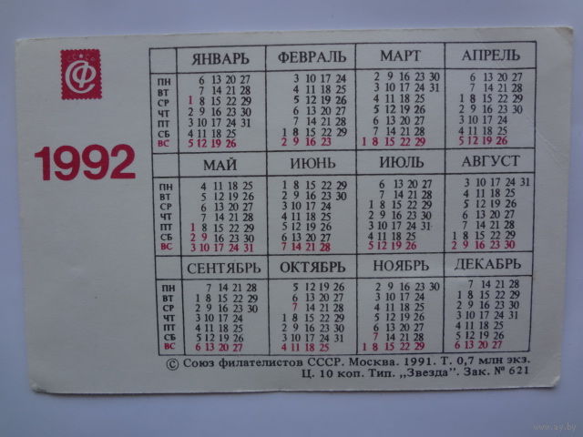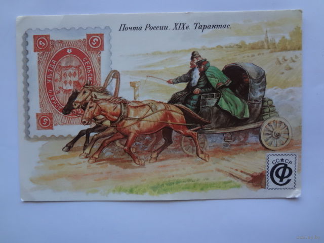 Календарик 1992 г. Почта России. XIX в. Тарантас.