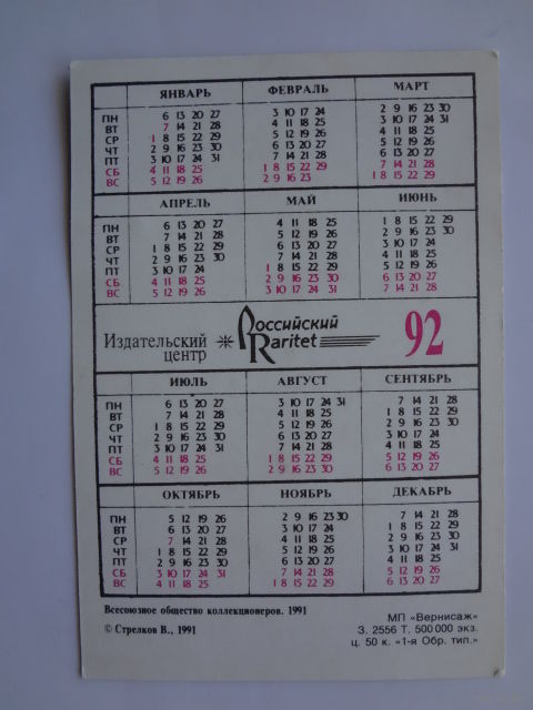 Календарик 1992 г. Рубль императрицы Екатерины II.