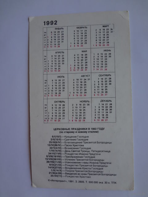 Календарик 1992 г. С.С. Щукин. Святой Александр Невский.