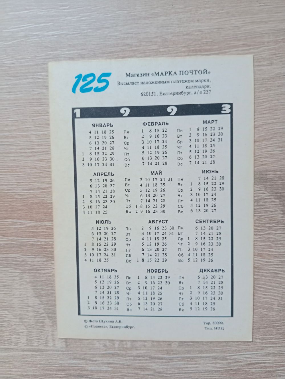 Календарик 1993