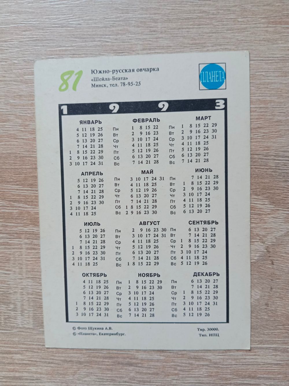 Календарик 1993