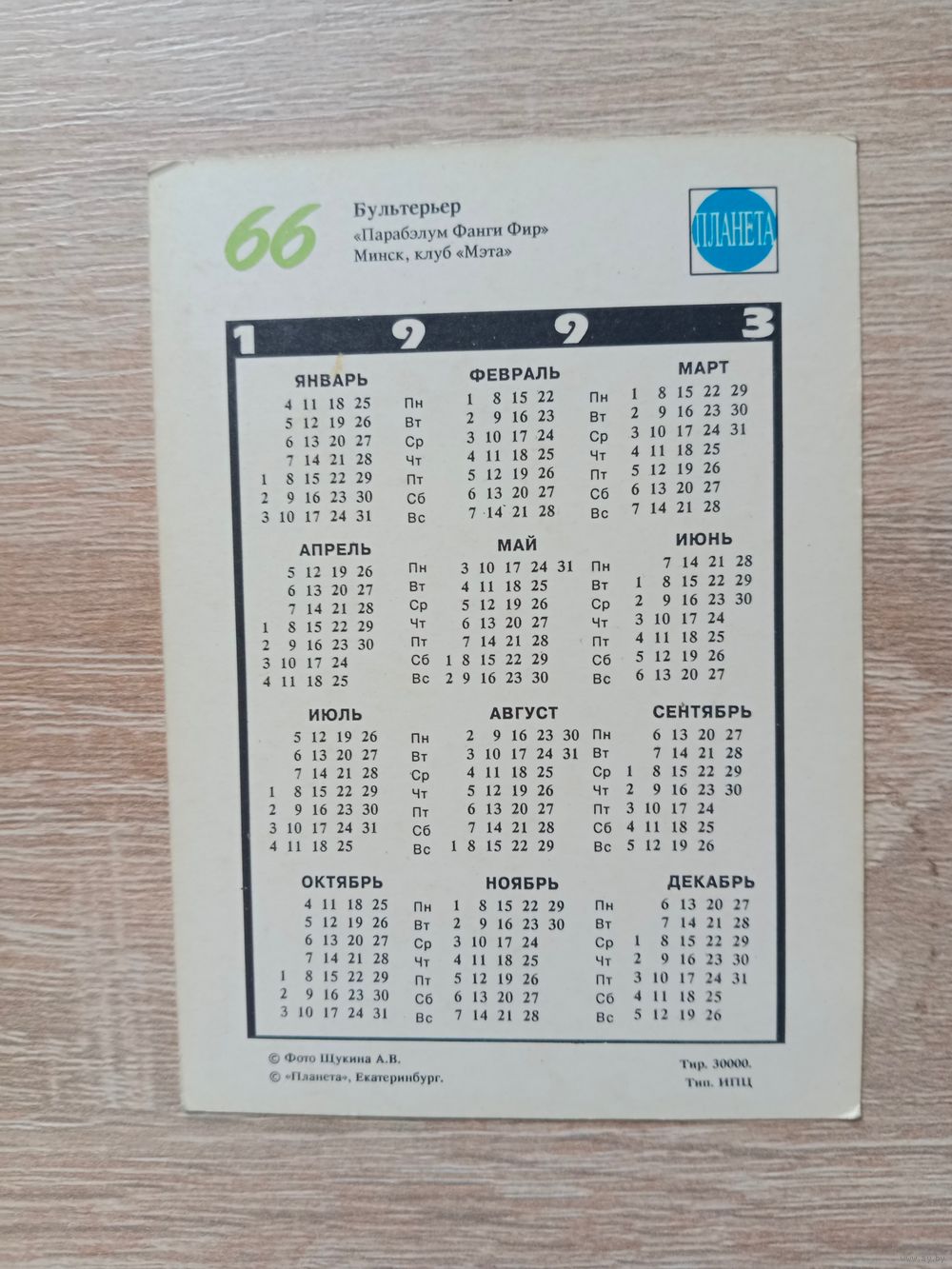 Календарик 1993