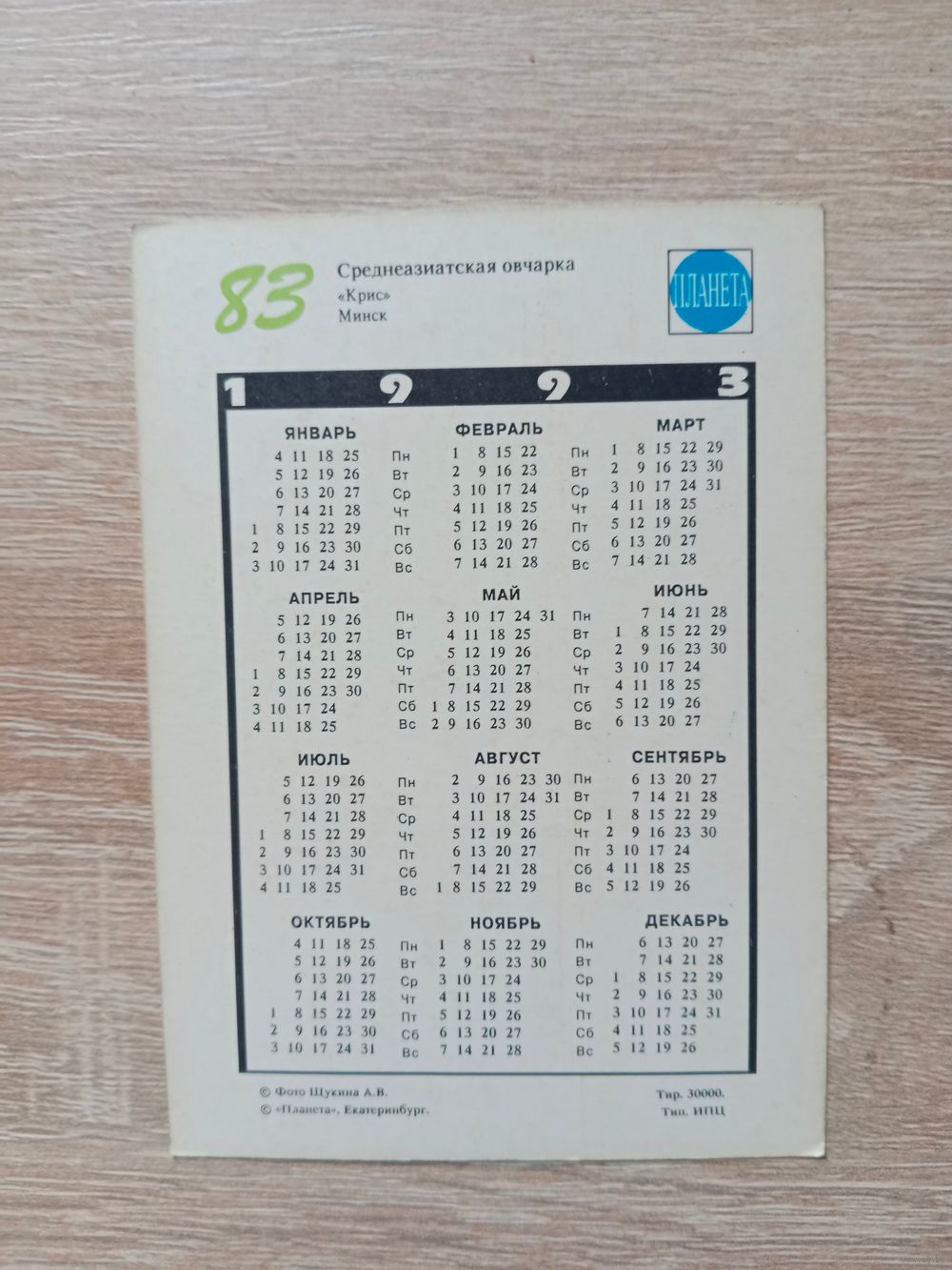 Календарик 1993