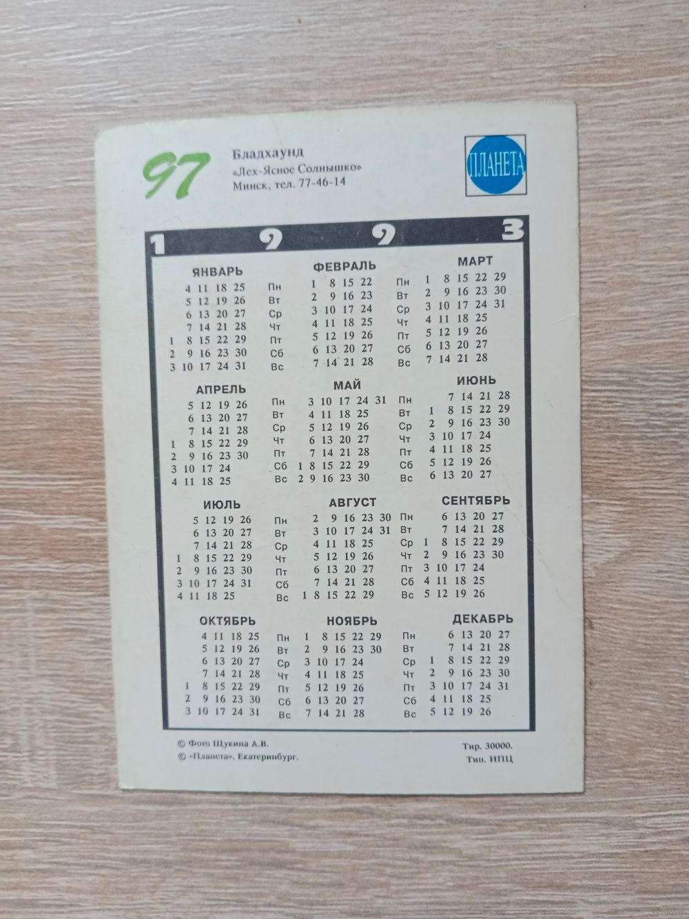 Календарик 1993