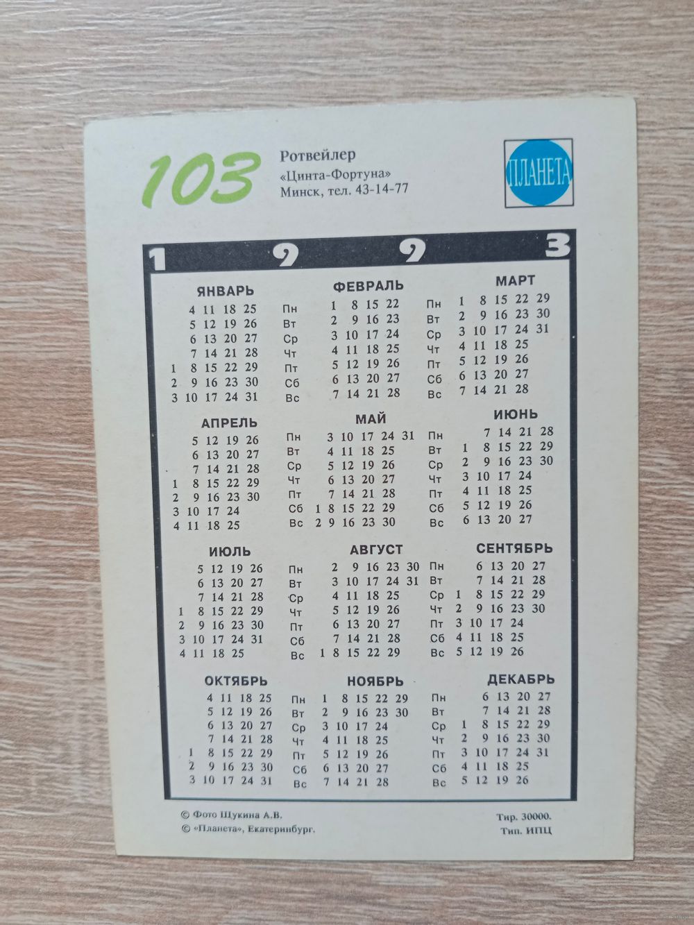 Календарик 1993