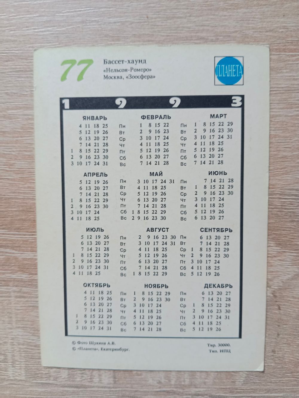 Календарик 1993