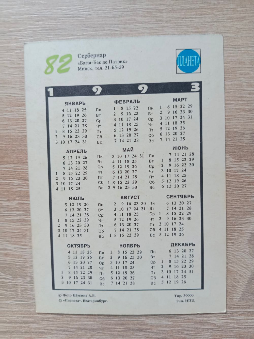 Календарик 1993