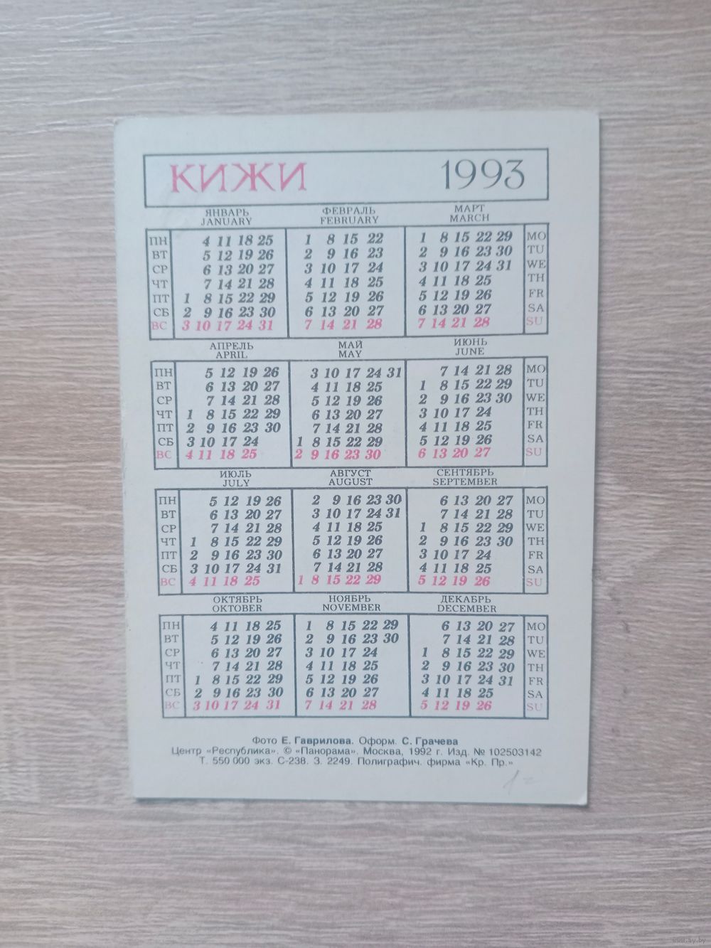 Календарик 1993