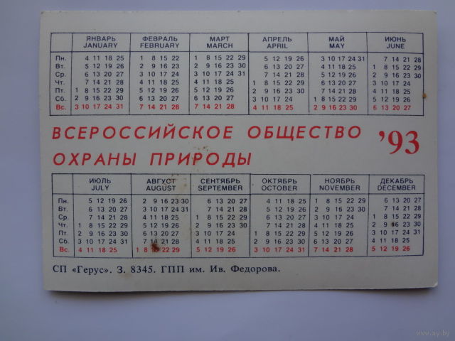 Календарик 1993 г. Рыба.