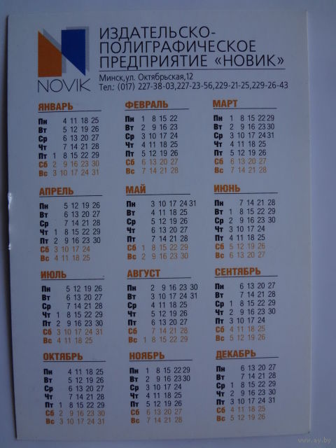 Календарик 1994 г. ИПП Новик.