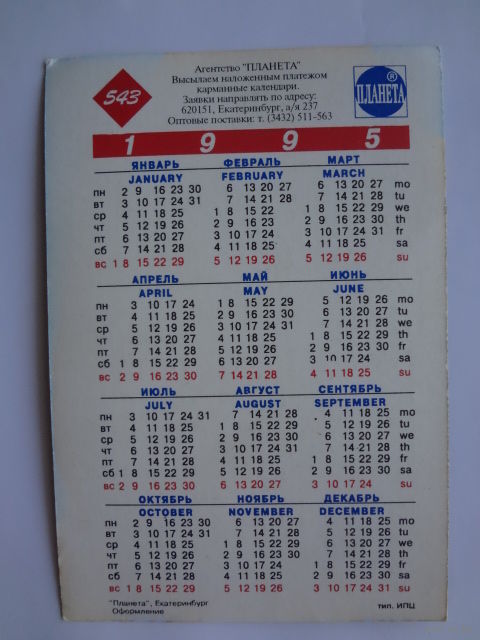 Календарик 1995 г. Бассет-хаунд. (543).