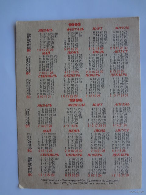 Календарик 1995 г. Земляника.