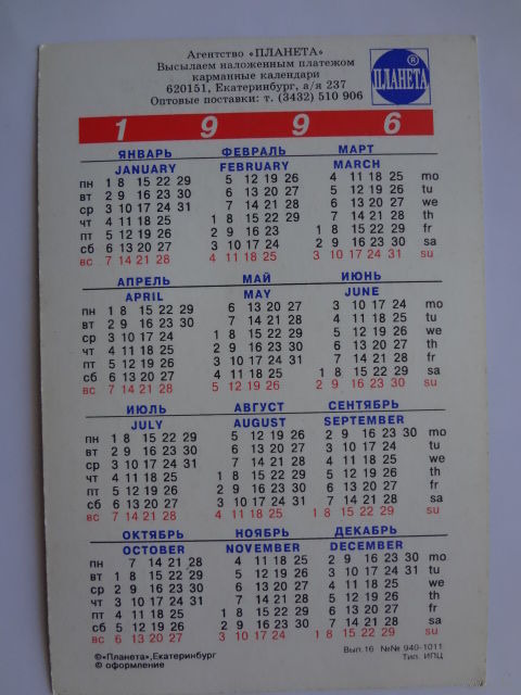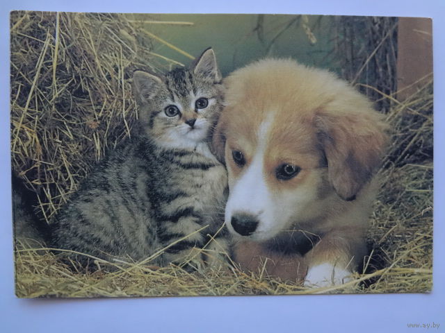 Календарик 1996 г. Котенок и щенок.