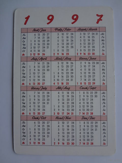 Календарик 1997 г. Белый котенок.