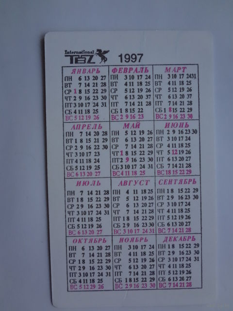 Календарик 1997 г. Фужеры.