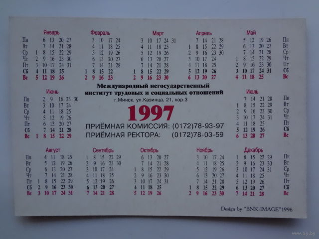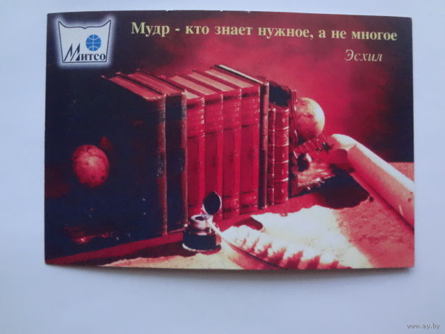 Календарик 1997 г. МИТСО. Мудр - кто знает нужное, а не многое. Эсхил.