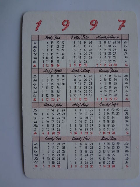Календарик 1997 г. Серый котенок.