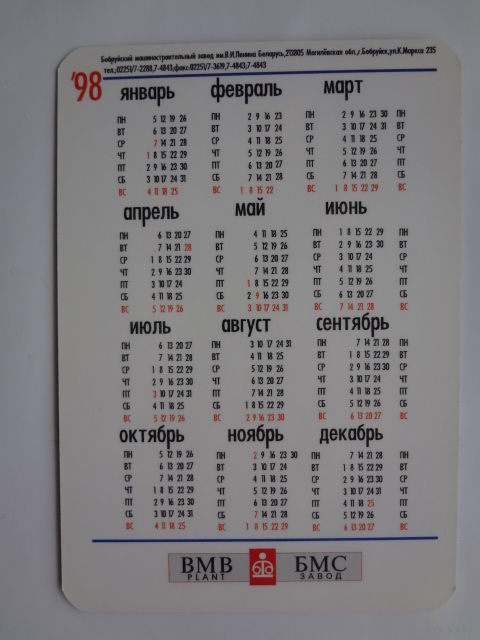 Календарик 1998 г. Бобруйский Машиностроительный Завод. 100 лет.