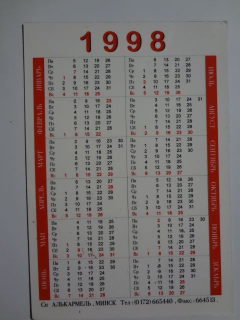 Календарик 1998 г. Девушка и собака.