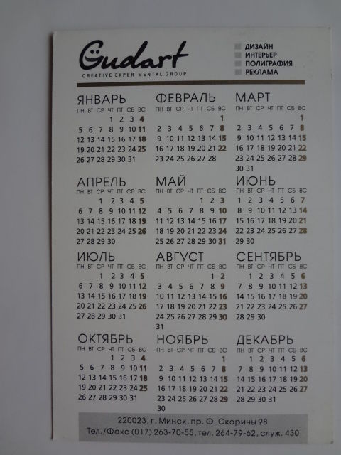 Календарик 1998 г. Gudart. Дизайн, интерьер, полиграфия, реклама.