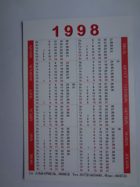 Календарик 1998 г. Прогулка у моря.