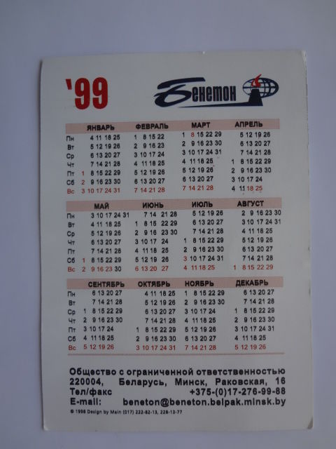 Календарик 1999 г. Бенетон.