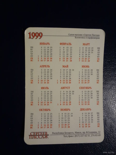 Календарик 1999 г. Парфюмерия. СергеевПассаж.