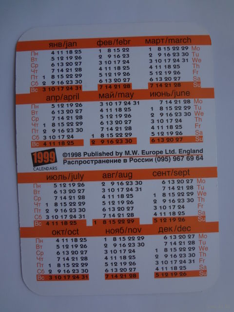 Календарик 1999 г. Стивен Сигал.