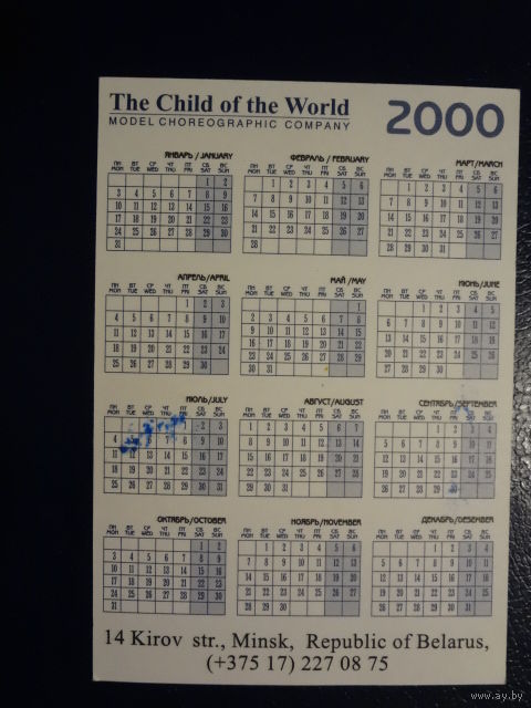 Календарик 2000 г. Дзіцячы харэграфічны ансамбль Дзіця свету.