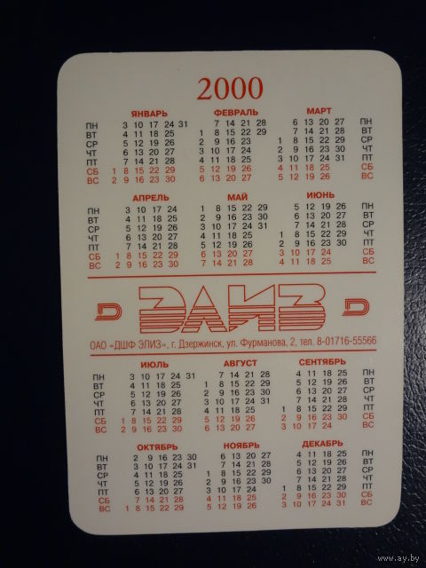 Календарик 2000 г. Элиз. (Дзержинск).