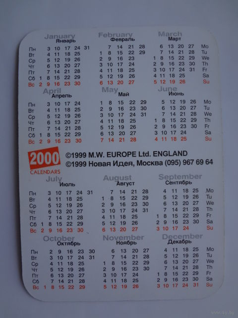 Календарик 2000 г. Кошка.