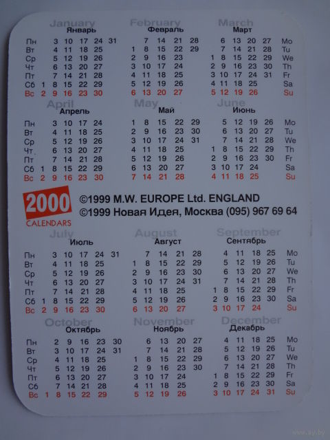 Календарик 2000 г. Котенок и цыпленок.
