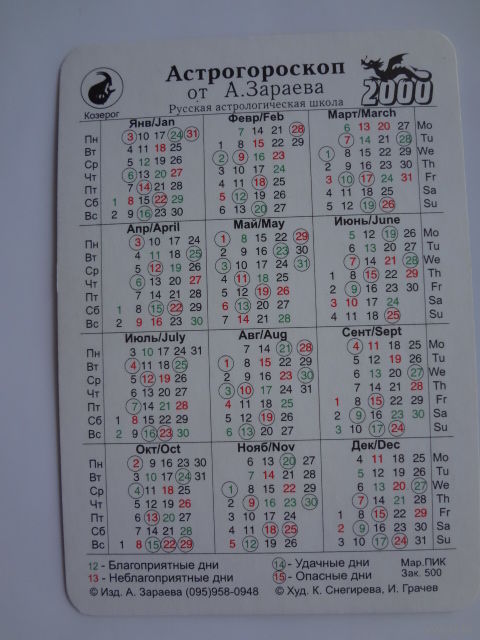 Календарик 2000 г. Козерог.