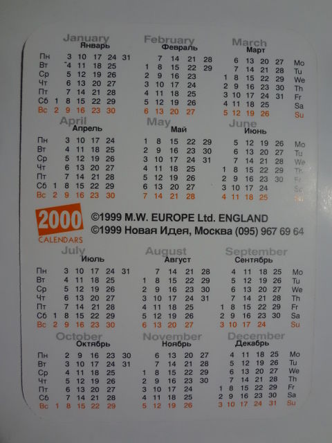 Календарик 2000 г. Щенок.