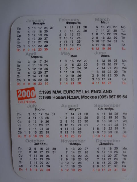 Календарик 2000 г. Синди Кроуфорд.