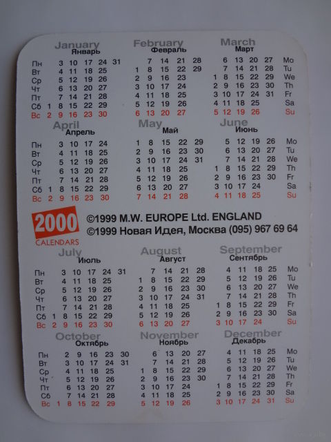 Календарик 2000 г. Синди Кроуфорд.