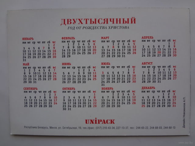 Календарик 2000 г. Слушай!