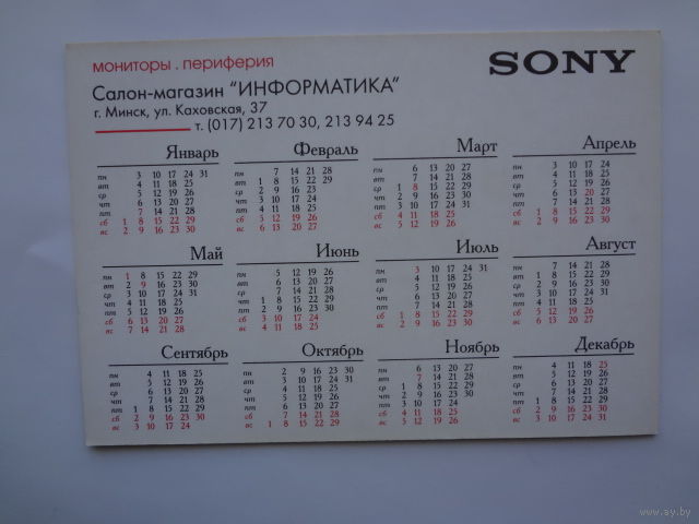 Календарик 2000 г. SONY. Мониторы, периферия.