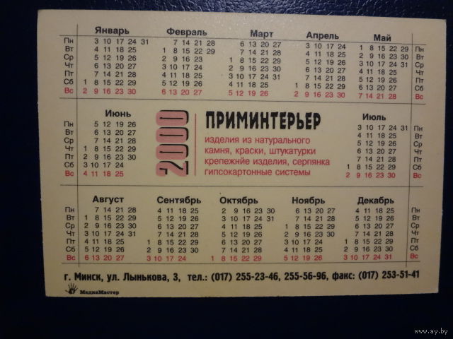 Календарик 2000 г. Строительные материалы. приминтерьер.