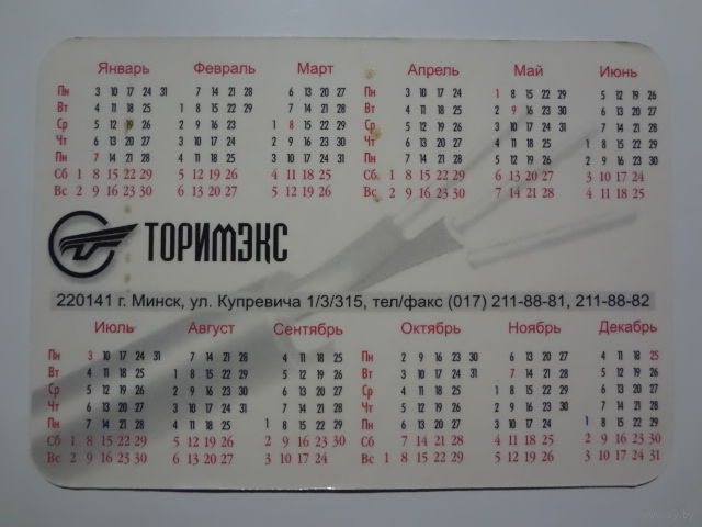 Календарик 2000 г. Торимэкс.