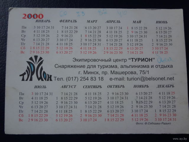 Календарик 2000 г. Турион. Начните путешествие у нас.