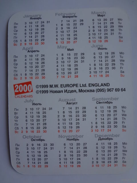 Календарик 2000 г. Важный кот.