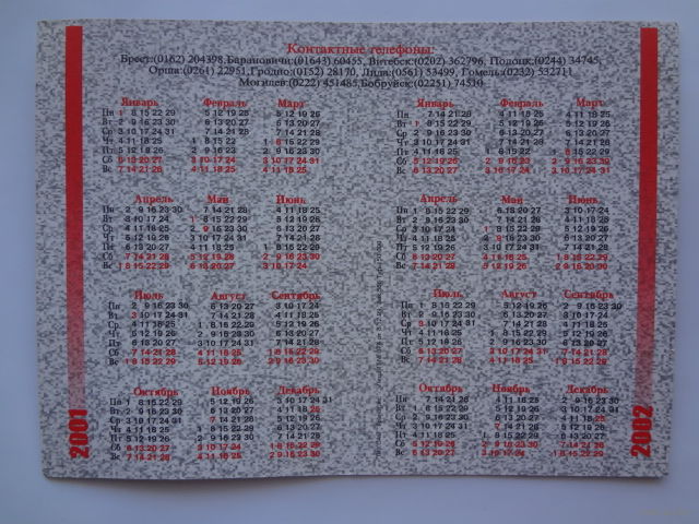 Календарик 2001-2002 г. С.В. Гайдукевич.