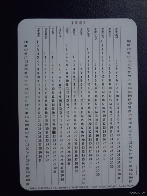 Календарик 2001 г. Альфа радио 107,9 FM. Ирина Турович.
