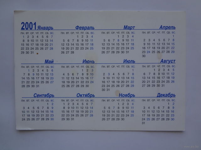 Календарик 2001 г. Бевалекс. Компьютерные системы.