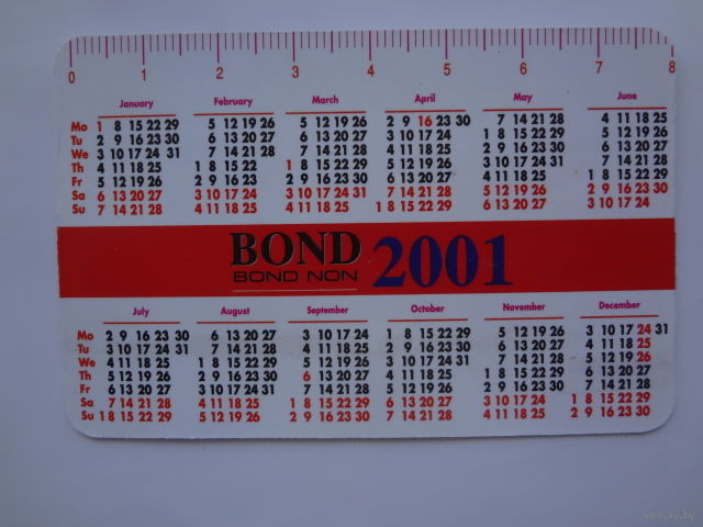 Календарик 2001 г. BOND.