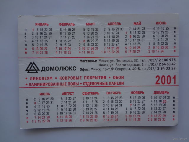 Календарик 2001 г. Домолюкс Мечты сбываются!