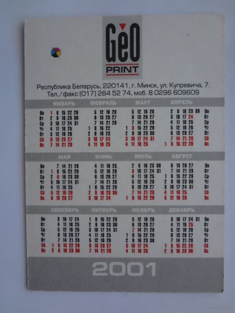 Календарик 2001 г. Геопринт. Сканирование, верстка ...
